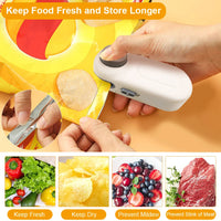 Rechargeable mini heat bag sealer for home and travel. Seal plastic bags quickly to keep food, snacks, and coffee fresh. Compact, lightweight, and convenient.